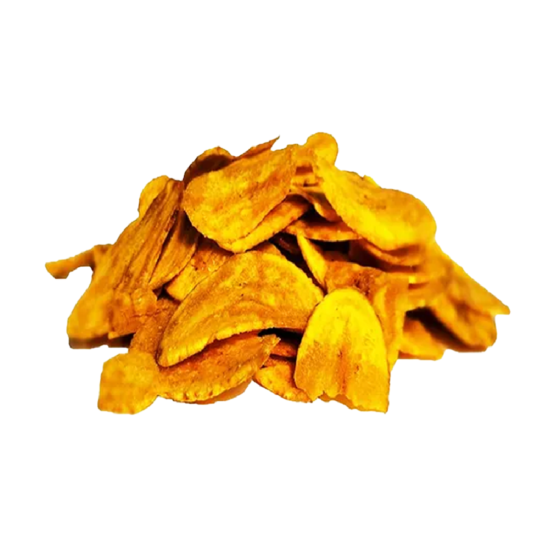 Ingredientes: Plátano verde selecto, oleína de palma, sal, producto troceado en ricas y crujientes tajaditas de plátano verde.